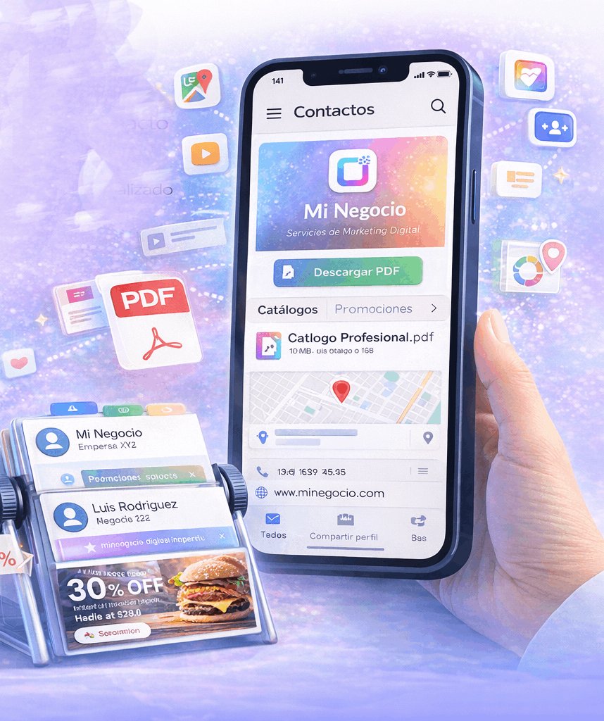 Sube tu catálogo en PDF, comparte tu ubicación en Google Maps si tienes punto físico, publica promociones y mantén tu perfil actualizado para que siempre refleje lo mejor de tu negocio.